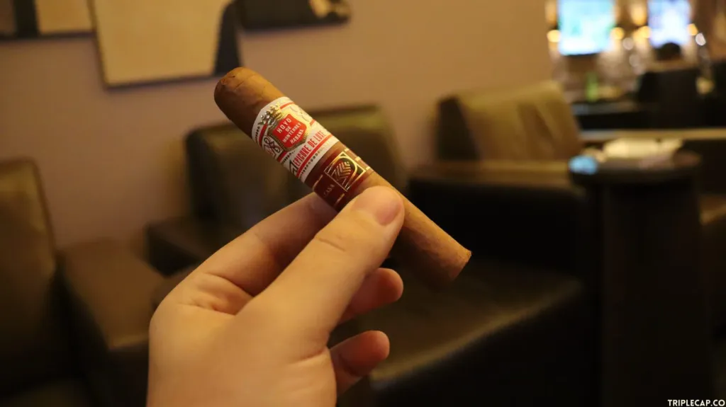Visually it’s a very nice cigar. The wrapper is uniform, and very nicely colored, if a little thin looking. Big double bands for such a small stick, but I do like the LCDH exclusive branding. I dry boxed this cigar for about 12 hours, gave it a punch cut, and lit with some matches.