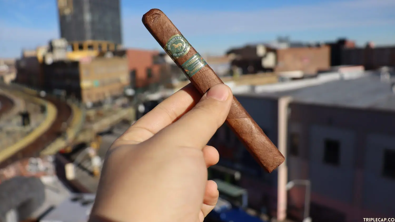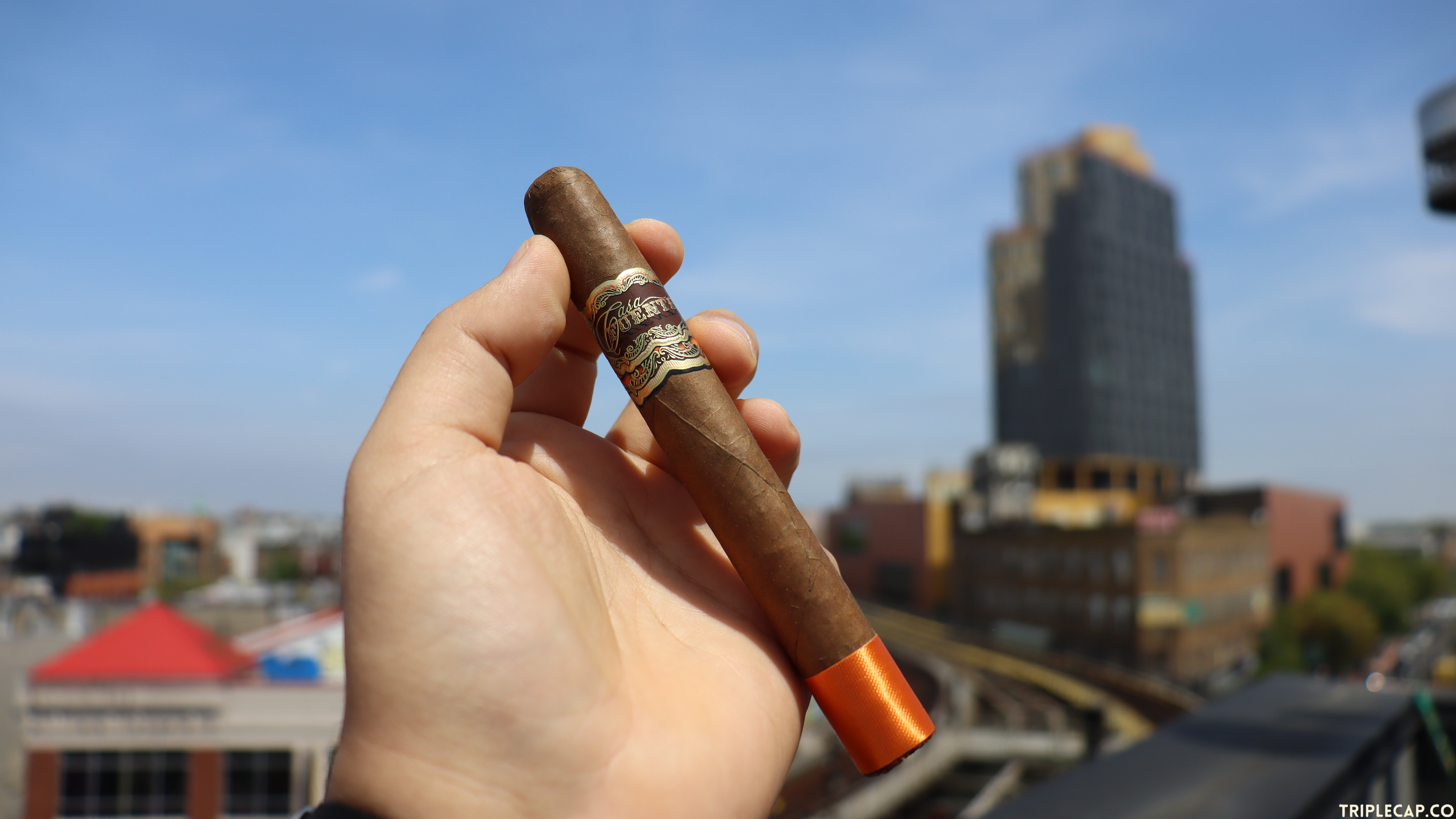 The wrapper is an oily, dark chocolate brown with some pronounced veins. It’s finished with a triple cap and a shallow pigtail. The aromas on the foot and wrapper are of dark wood and cinnamon. The draw is snug, but tolerable, with notes of grass and barnyard.
